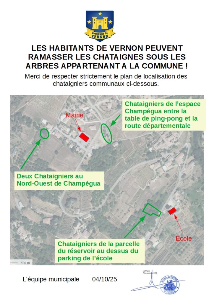 Vernon fait partie de la Communauté de Communes Beaume-Drobie, au sein du Parc Naturel des Monts d’Ardèche.