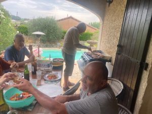 Cette année le repas d’été a eu lieu chez Marc qui nous a accueillis avec sa générosité habituelle. Il nous a cuisiné son excellent couscous et chacun a amené une spécialité faite maison et une bouteille, menu complet auquel se sont ajoutées convivialité et bonne humeur habituelles au club.