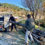 Chantier participatif du samedi 15 février 2025 : ébrancher, refendre et déplacer les troncs pour la confection du mobilier de la place publique de Champegua