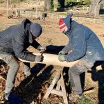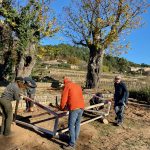 Chantier participatif du samedi 29 mars 2025 : refendre et débarder les troncs pour la confection du mobilier de la place publique de Champegua