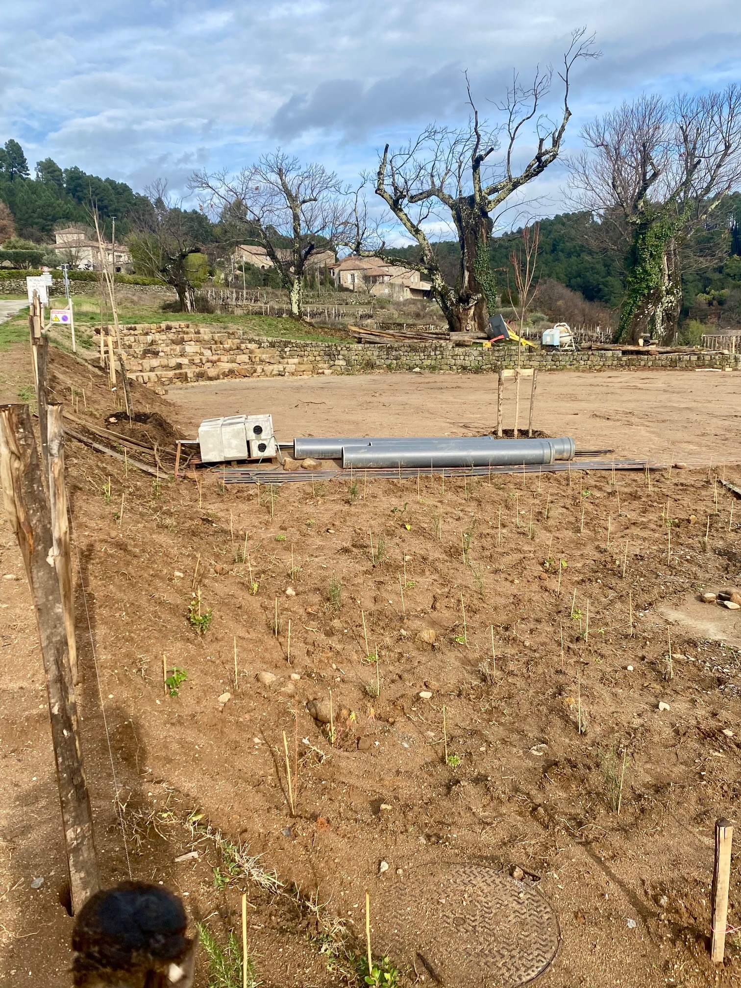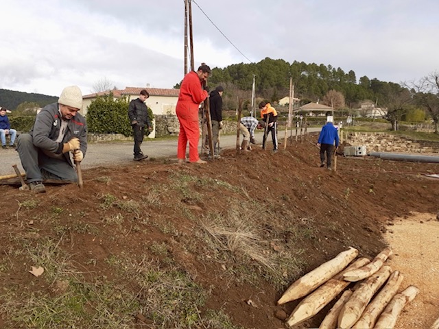 Ainsi le parking, les jeux d’enfants et le stade sont bien avancés, les prochains chantiers participatifs auront lieu les samedis 10 janvier pour les plantations et 31 janvier pour la réalisation du mobilier : tables, bancs…rendez-vous 9h à la mairie. Ensuite ce sera la construction de la buvette en mars/avril.