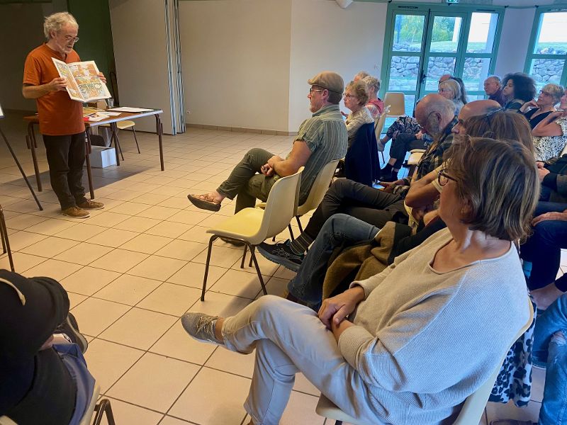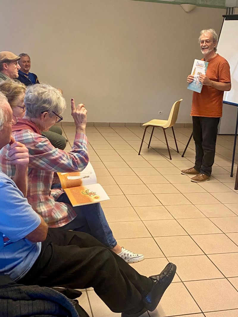 Ce vendredi d’octobre Alain Brechbuhl a ouvert la saison des Causeries vernonnaises. Il nous a proposé un bel échange autour du livre à partir de son expérience d’illustrateur, de créateur et de graphiste. Les nombreuses questions et remarques du public ont montré leur intérêt pour le sujet et mis en valeur le talent de cet artiste cher aux vernonnais.