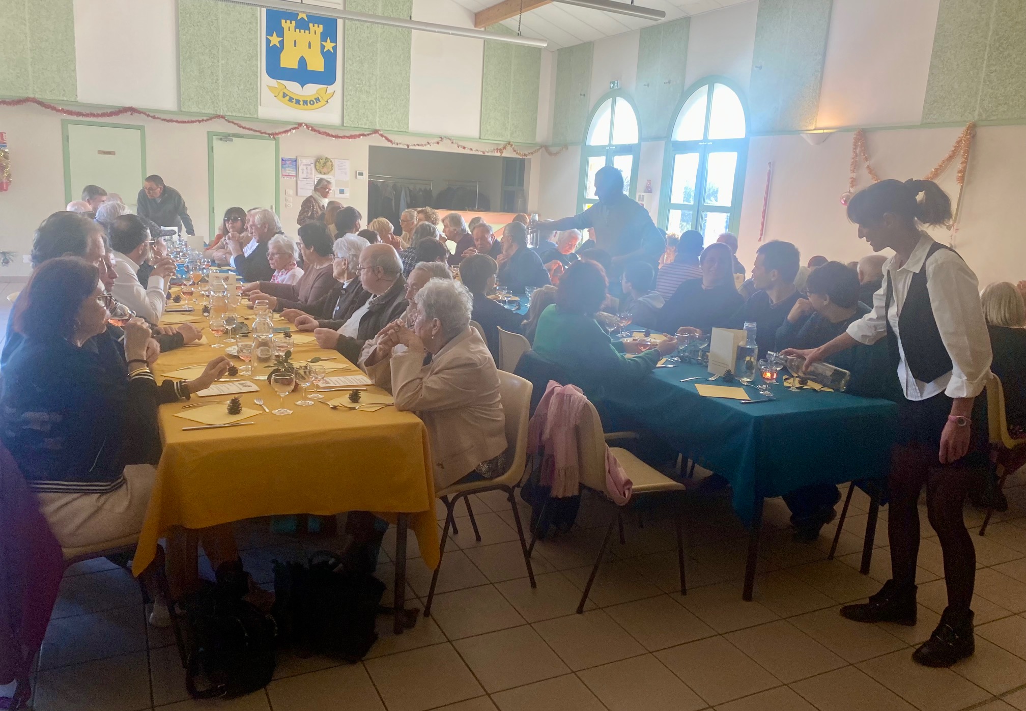 Le repas de Noël de la commune organisé par le CCAS a rassemblé à la salle communale 69 convives : vernonnaises, vernonnais entourés de leur famille et amis. Ce fût un moment privilégié de convivialité autour d’un bon repas, proposé par le traiteur « au Gourmet » des Vans. Les présents ont également pu admirer l’exposition des photos du concours photos du patrimoine vernonnais et voter pour leur préférée.