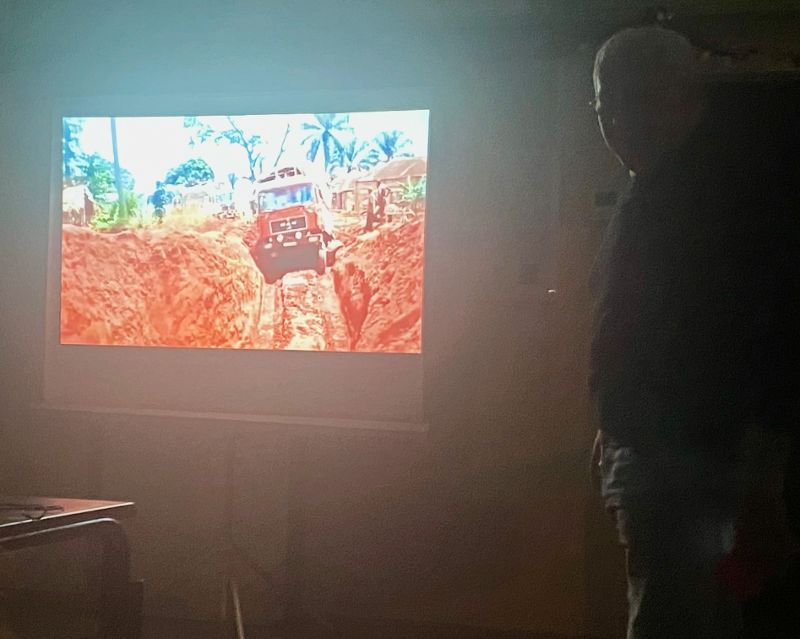 Robert Eschalier nous a fait partager avec enthousiasme et précision son aventure professionnelle de deux ans dans cet immense pays sous régime dictatorial qu’était le Zaïre dans les années 1980. Il nous a fait vivre, grâce à de nombreuses photos commentées en direct, les différentes étapes de ce chantier qui consistait à installer 250km de canalisations afin d’approvisionner en eau potable les habitants d’une région. L’ensemble des travaux ont dû, pour des raisons pratiques, économiques et politiques être effectués manuellement grâce à l’embauche de 430 ouvriers…un travail hors norme que Robert nous a fait vivre à travers bon nombre d’anecdotes cocasses !