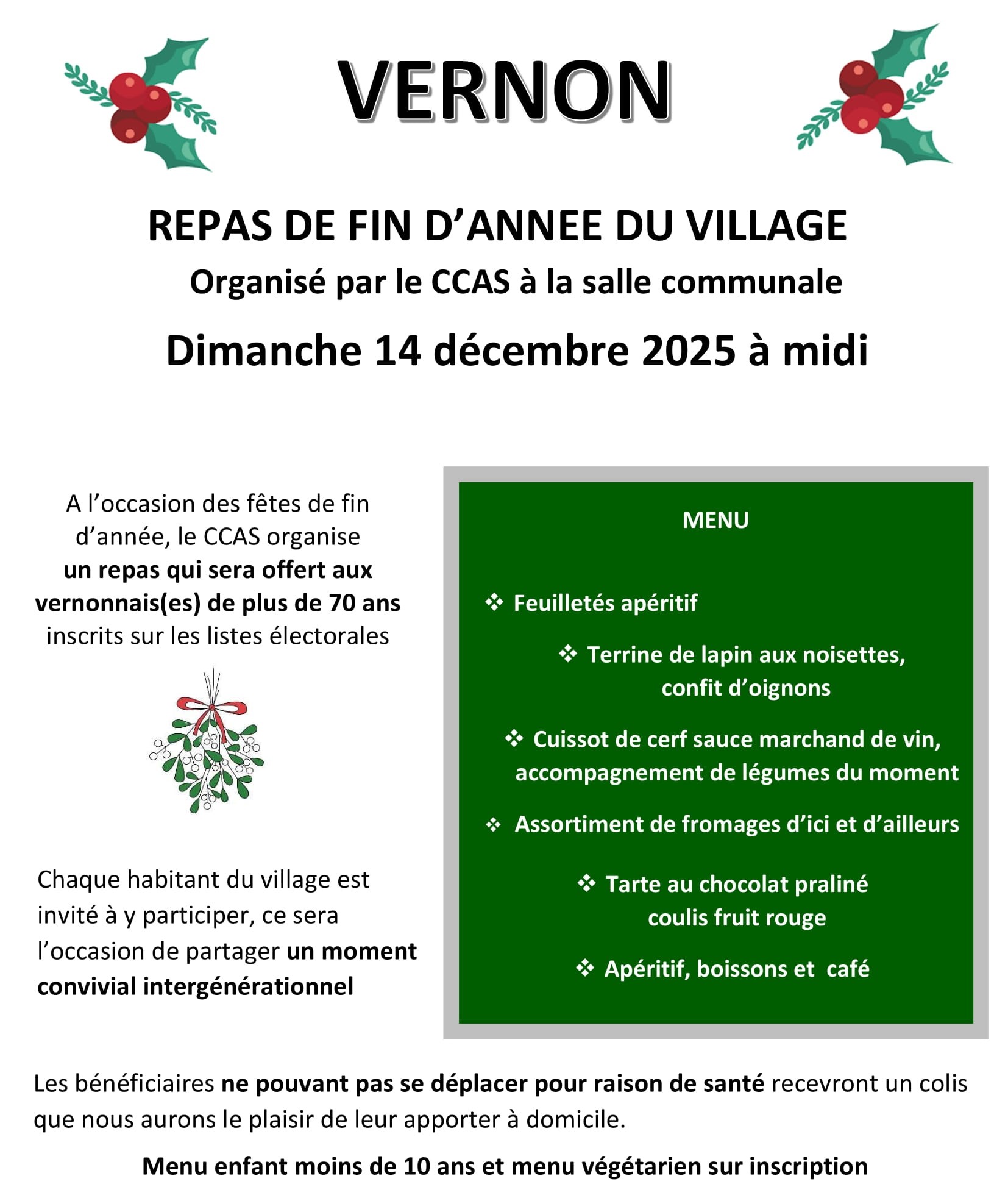 REPAS DE FIN D’ANNÉE DE LA COMMUNE – dimanche 14 décembre 2025