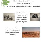 Vendredi 13 mars 2026 : Souvenirs douloureux et heureux d’Algérie