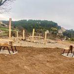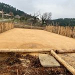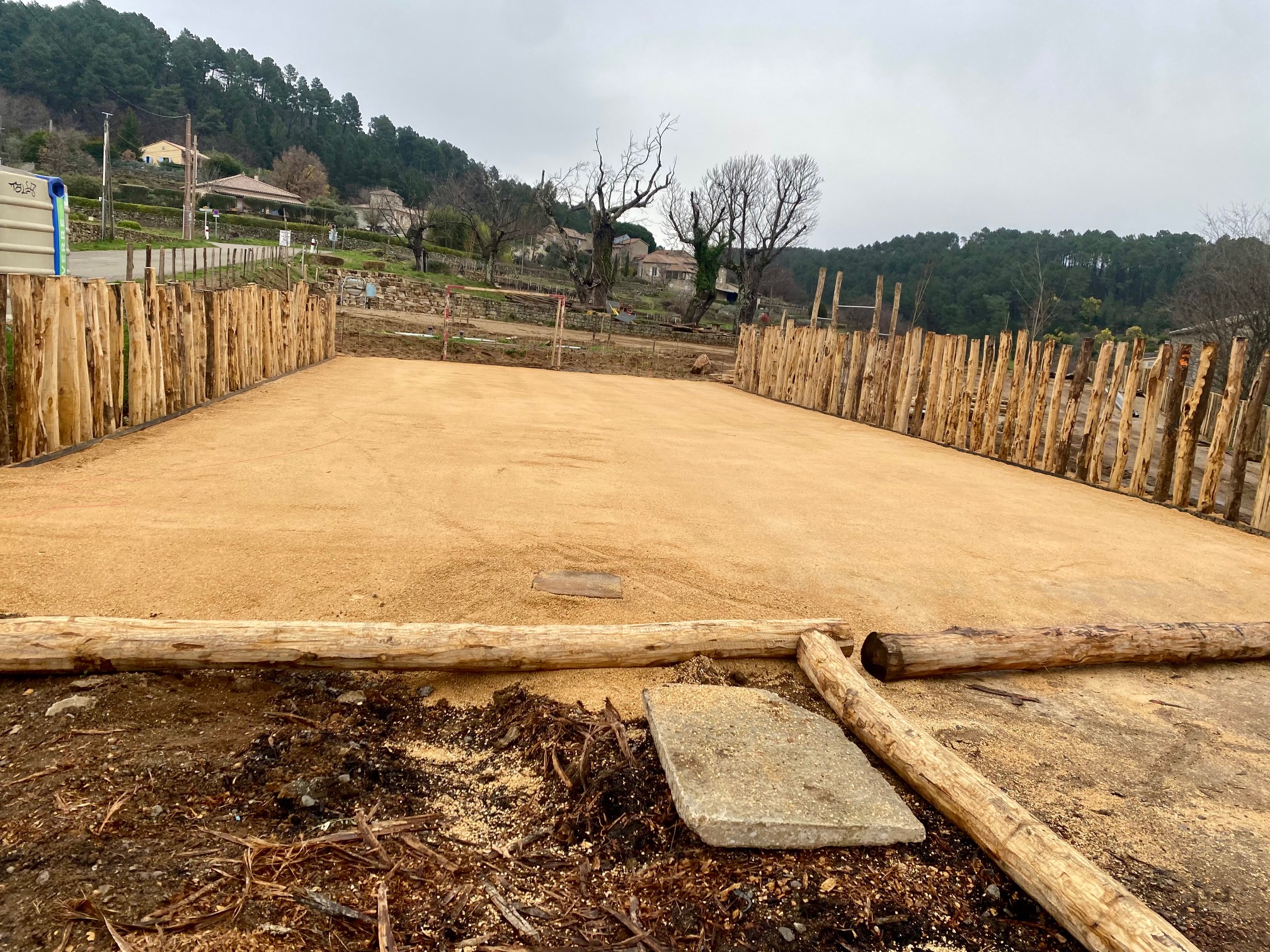 Chantiers participatifs d’octobre à décembre 2025 : écorçage et ponçage des grumes, implantation des éléments de la place : parking, mini stade, aire de jeux…