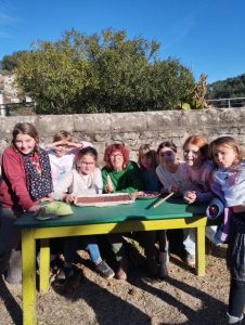 Comme chaque année, Sylvie et Jean-Luc Allamel ont invité les élèves de la classe de Vernon à prendre un goûter sur leur superbe terrasse du Mas de l’Aubezon.